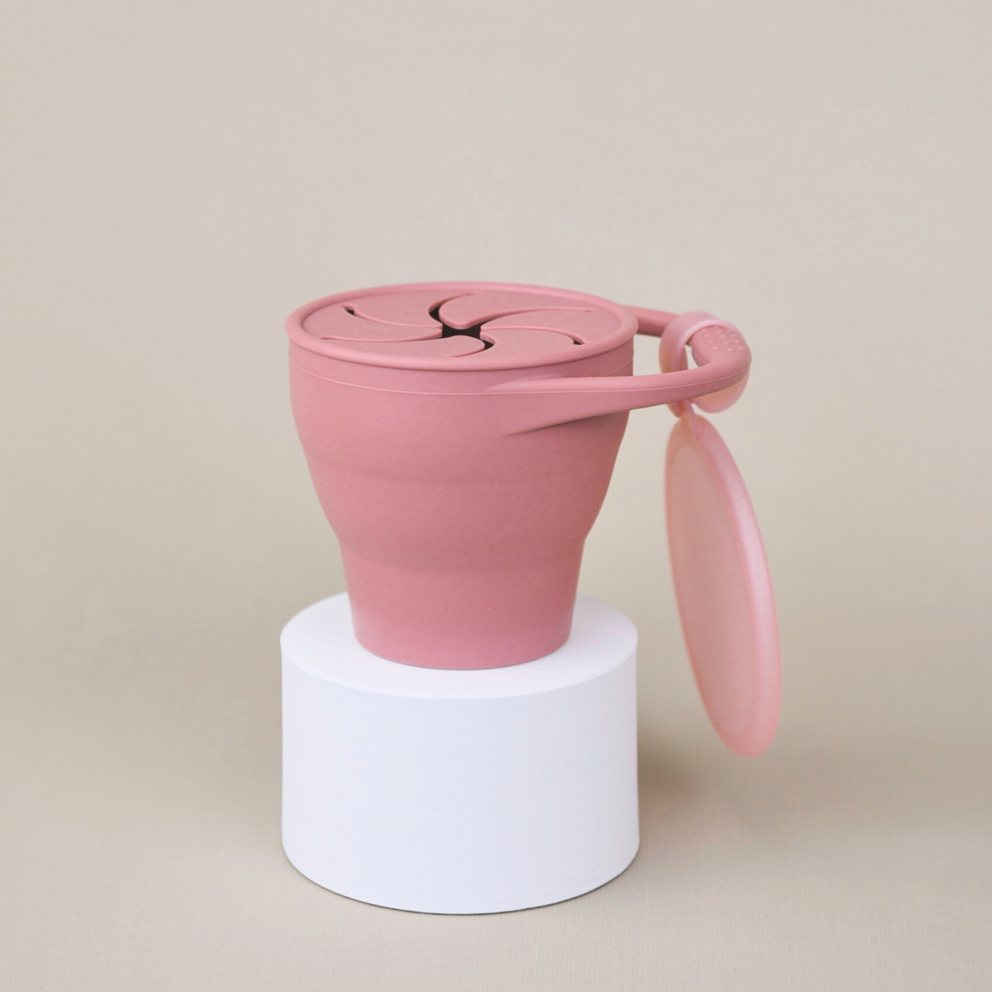 Unsere Snackbox aus weichem Silikon ist die perfekte Begleitung für unterwegs. Sie bietet ausreichend Platz für kleine Snacks und überzeugt mit durchdachten Details, die Deinen Alltag mit Baby erleichtern.