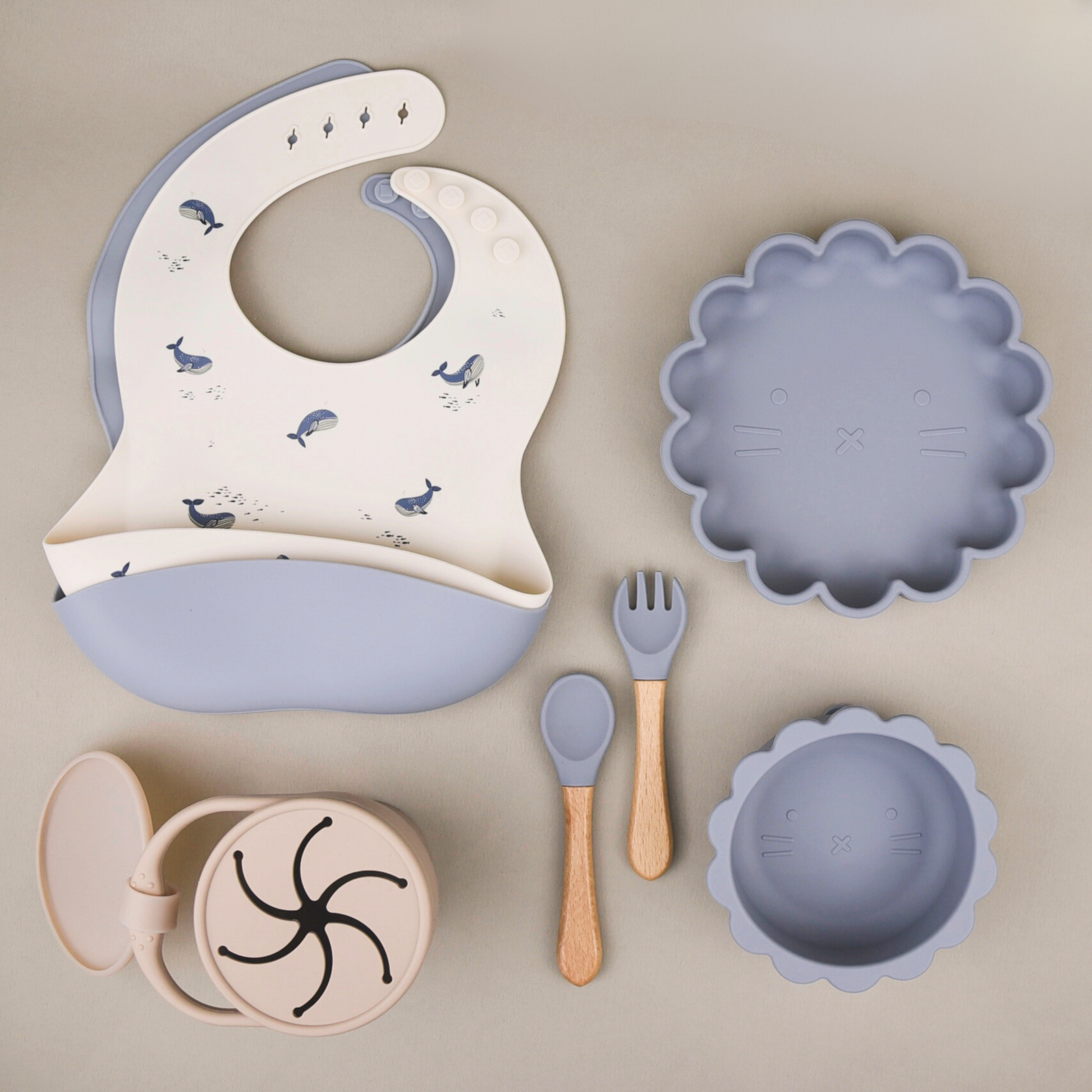 7-teiliges Babygeschirrset mit Lätzchen & Snackbox