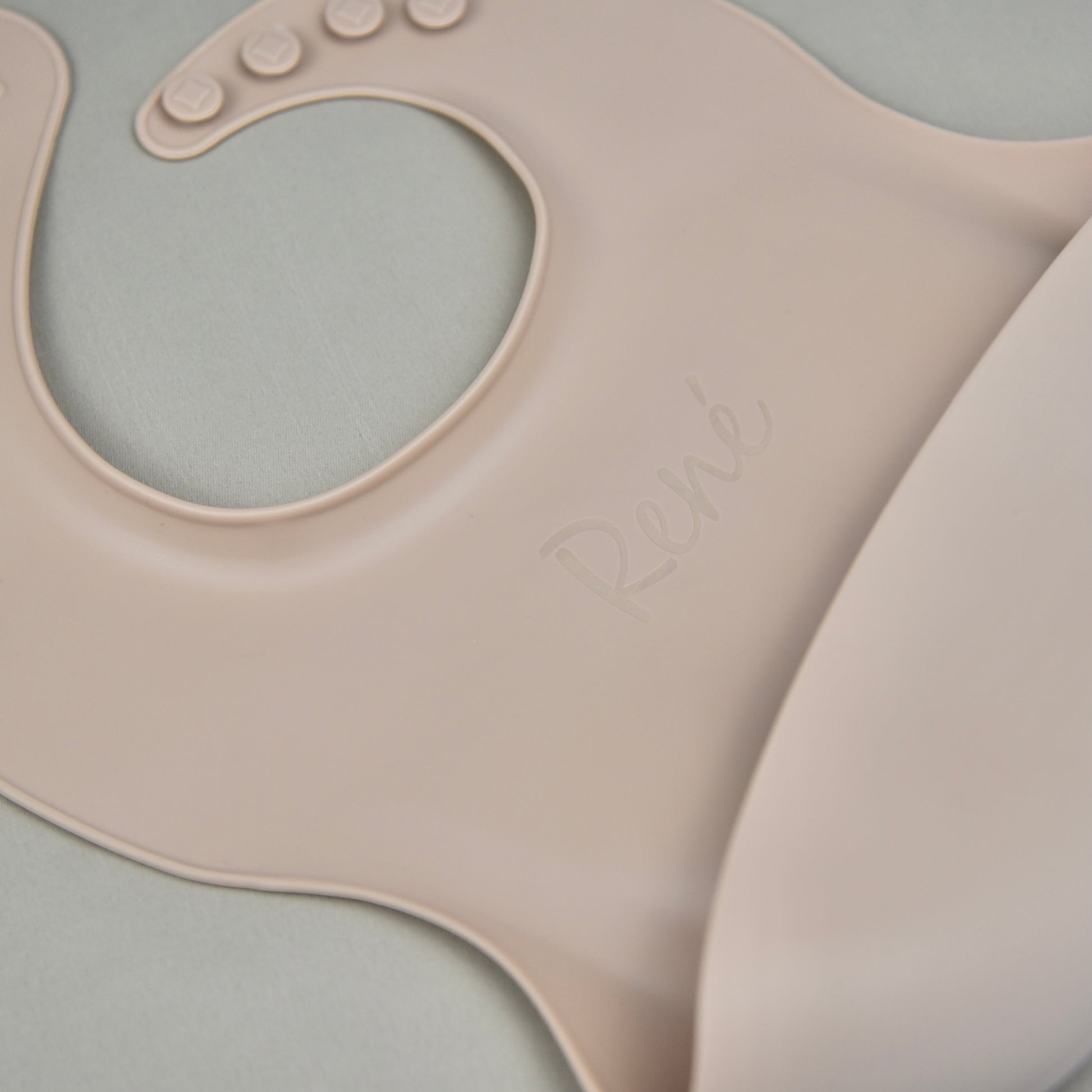 Personalisierung möglich: Auf Wunsch gravieren wir den Namen auf Teller, Schale, Besteck und Silikonlätzchen.