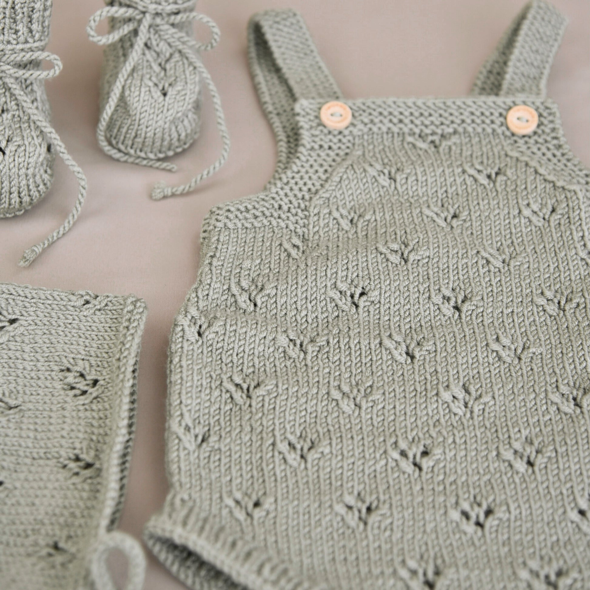 Handgefertigtes Baby Strick-Set mit Strampler, Mütze und Söckchen