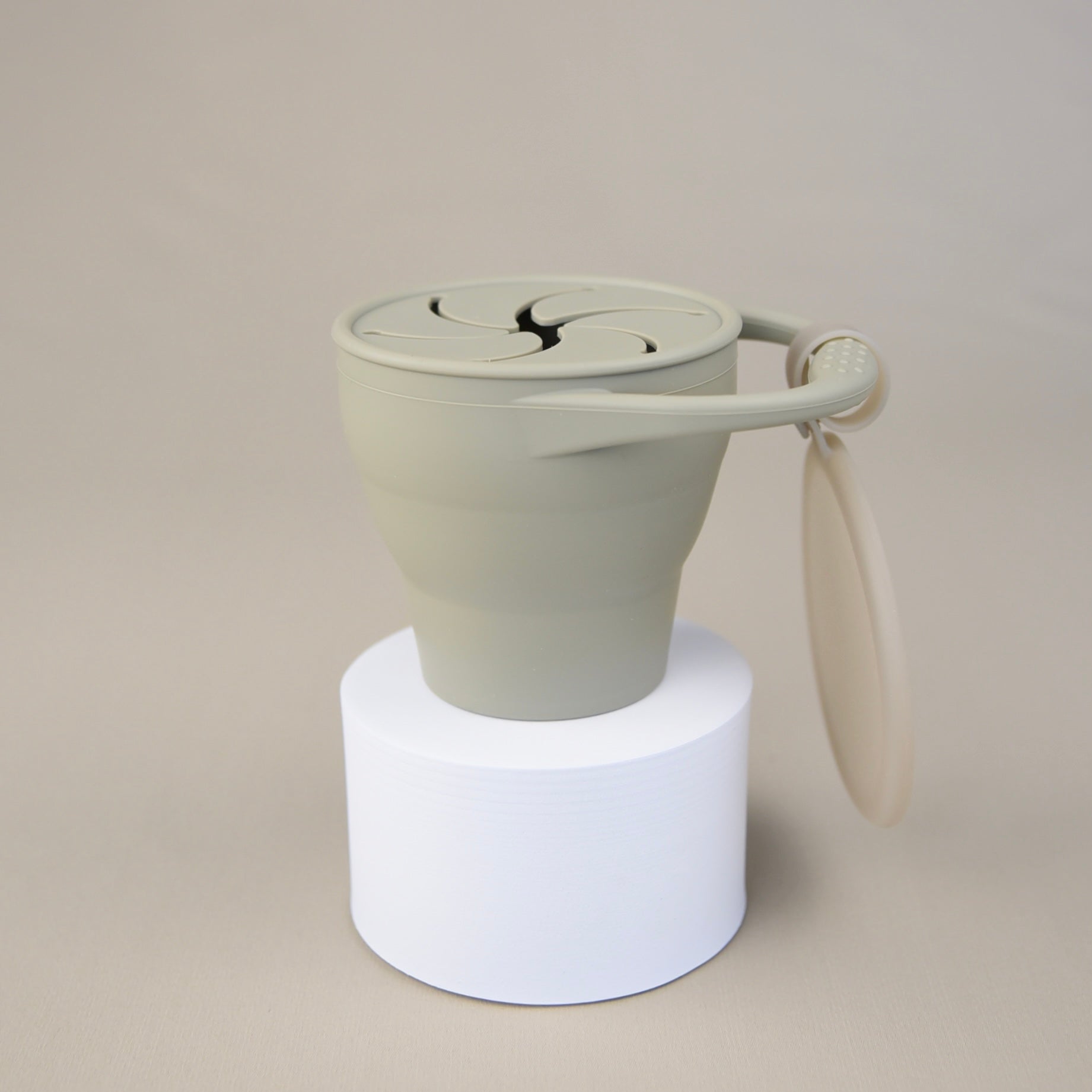 Eine gute Snackbox sollte leicht sein, auslaufsicher, flexibel und einfach zu handhaben, besonders für kleine Kinderhände. Unsere Silikon Snackbox erfüllt genau das. Sie ist weich, faltbar, mit Griff und Deckel ausgestattet und macht das Snacken für Kleinkinder leichter. Die sternförmige Öffnung schützt den Inhalt und ermöglicht gleichzeitig selbstständiges Essen.
