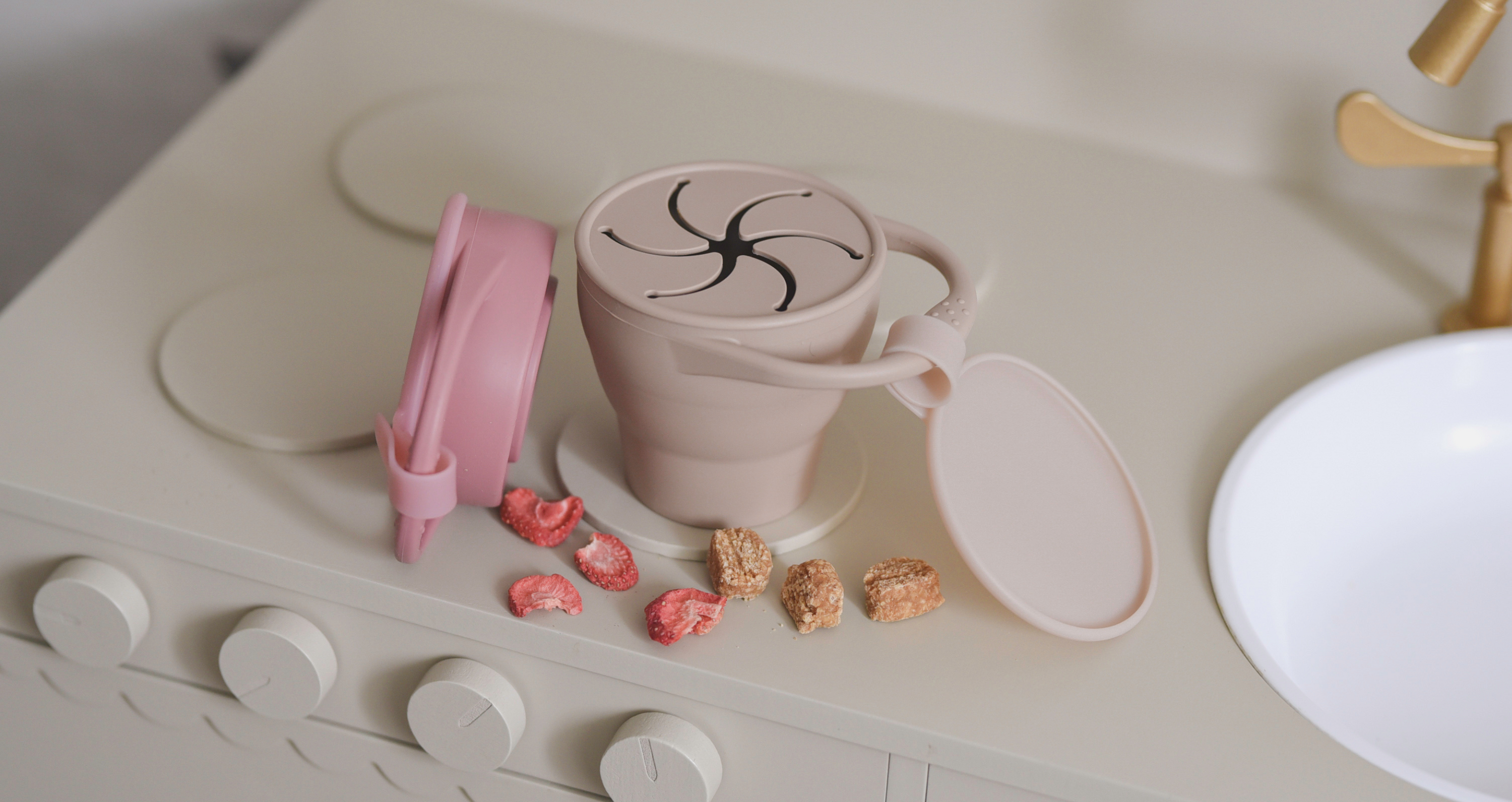 Eine gute Snackbox sollte leicht sein, auslaufsicher, flexibel und einfach zu handhaben, besonders für kleine Kinderhände. Unsere Silikon Snackbox erfüllt genau das. Sie ist weich, faltbar, mit Griff und Deckel ausgestattet und macht das Snacken für Kleinkinder leichter. Die sternförmige Öffnung schützt den Inhalt und ermöglicht gleichzeitig selbstständiges Essen.