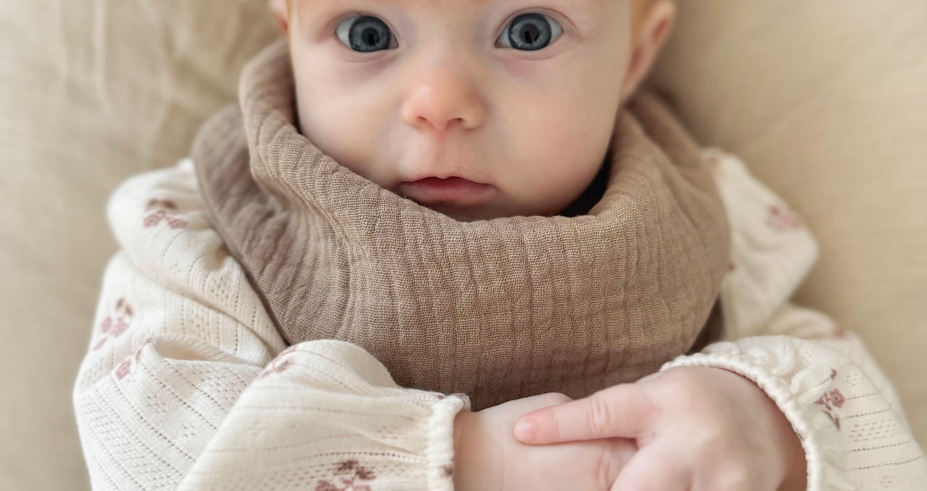 Unsere Musselin Lätzchen schützen sanft vor Speichel und halten die Haut trocken. Für mehr Wohlfühlmomente in dieser intensiven Zeit.